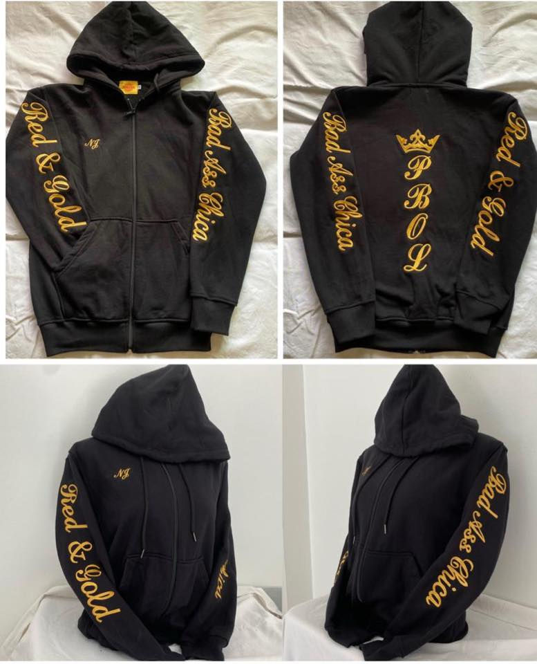 Schwarze Hoodie Jacke PBOL Red&Gold
